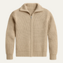 Timeless Style, Effortless Comfort – The Lisbon Men’s Knitted Full Zip Merino Wool Cardigan – Beige