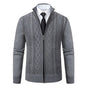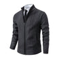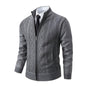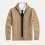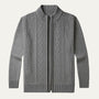- Features: Full zip, ribbed cuffs, and hem, subtle cable-knit detailing, classic tie