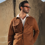 The Hyatt Men's Camel Suede Overshirt - Slim Fit Luxury Jacket with Pockets